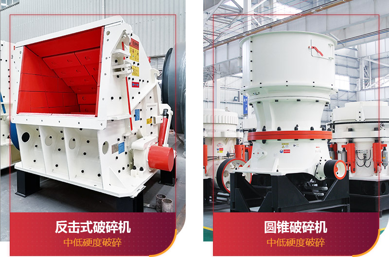 反擊式破碎機(中碎、二破):適合用于中等硬度低磨蝕性石料,進料粒度≤230mm,利用沖擊來破碎物料,結構緊湊、機器剛性強、轉子具有大的轉動慣量,綜合效益高;